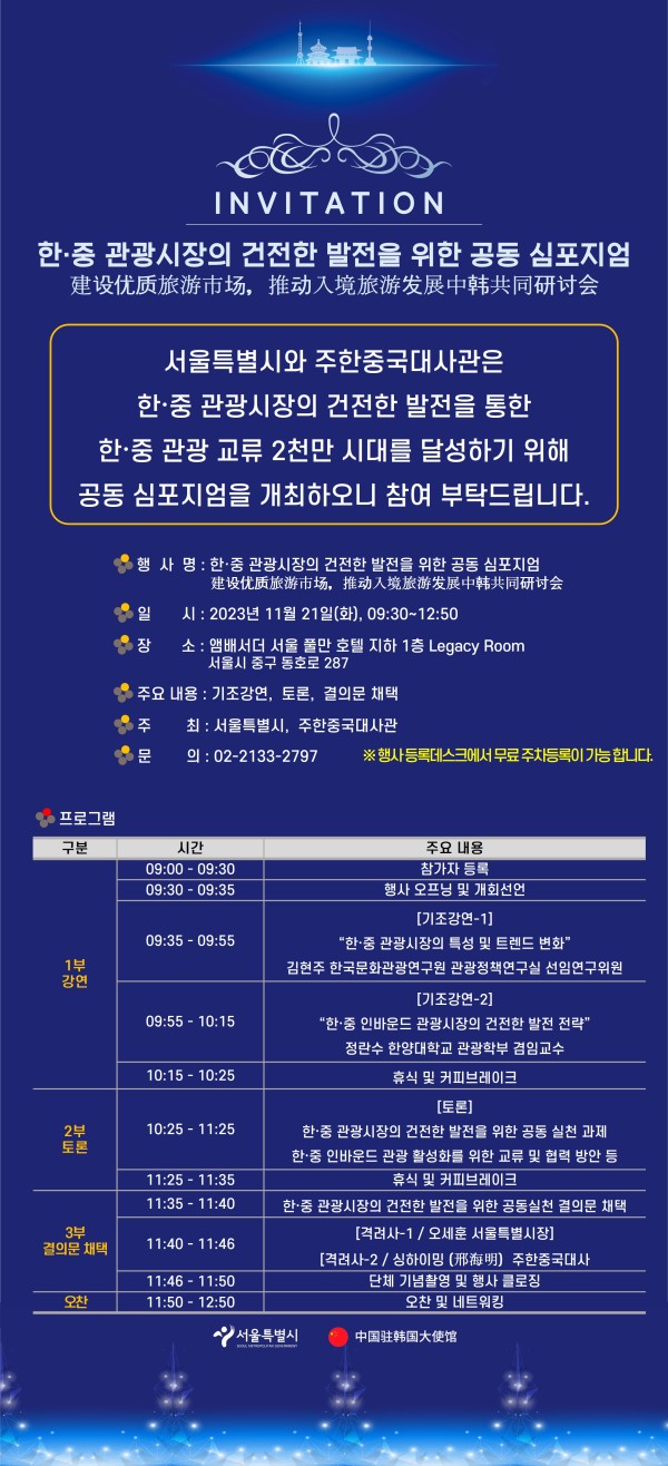 한중 관광시장의 건전한 발전을 위한 공동 심포지엄_2023.11.21