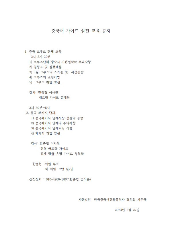 중국어 가이드 실전 교육 공지